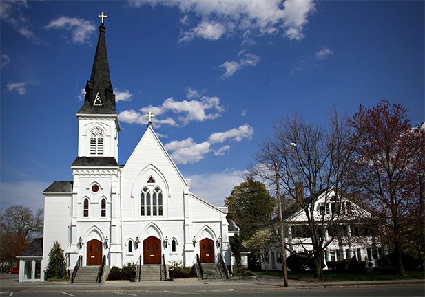 When and where the first Catholic Mass was held is conjectural. More than likely, Mass was celebrated in one of the homes of a leading citizen. For a number of years before St. Mary’s was formally established, however, Mass was celebrated in the old Town Hall. Local Catholics would assemble and Fr. Boyce or one of the other priests from Milford would hear confessions, baptize, and celebrate Mass. The Holliston community would be joined by people from as far away as Westborough, Bellingham, and Cordaville. Still other Catholics walked to Milford for Mass. Many people remember the walk to Mass, a distance of seven miles to St. Mary’s. It is remembered that on a Sunday morning as many as 75 to 80 people could be seen winding their way by the railroad track and road to worship. After its construction in 1851, the old St. Malachy (St. John’s) Church in Hopkinton, also attracted many Catholics from Holliston for their religious needs.