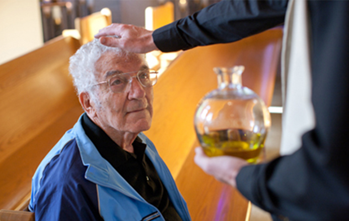 The Sacrament of the Anointing of the Sick is offered to all persons who are facing a serious illness or medical condition. In the scriptures, oil is a symbol of vitality, and its use in this sacrament represents the strengthening we pray the sick person will receive from God. In addition to healing, the sacrament of the Anointing of the Sick also accomplishes the forgiveness of sin. Thus only a priest may perform it.